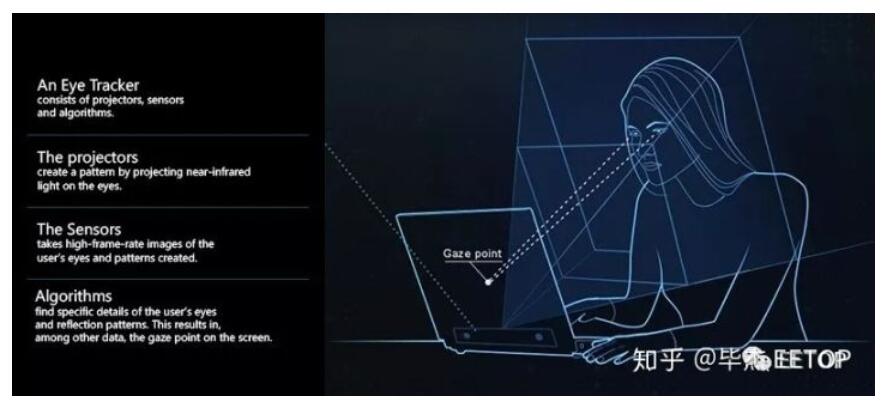 眼动追踪通过将近红外光指向瞳孔来工作。这会在角膜上产生反射。红外(IR)摄像机跟踪这些反射,从而跟踪您的注视点的移动。该技术可以分辨您的瞳孔和虹膜之间的差异,因为光线会进入瞳孔但会从虹膜上反弹。请注意,人类通常/不能轻易看到近红外光,因此这不会分散用户的注意力。