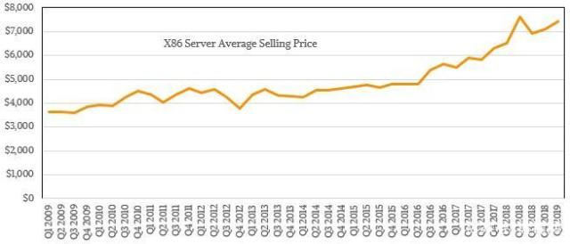 据我们所知,没有一家原始设备制造商或原始设计制造商用黑色墨水滚动,更不用说游泳了。但随着服务器的平均销售价格下降到2000年的水平,2010年后它需要在2010年再次提升。下图是基于IDC的数据,自2009年第一季度以来x86服务器的平均售价: