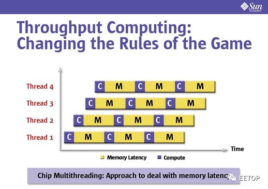 其中最值得大书特书的就是奠定Sun SPARC 处理器发展方向的Throughput Computing:简单多核心、超多线程、大量存储器频宽。