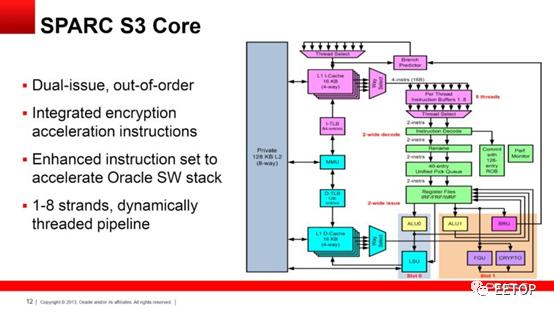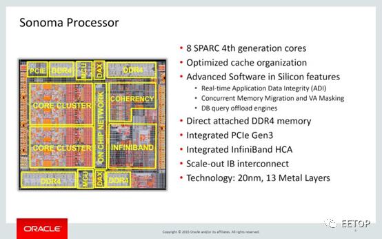 - 2015 年的SPARC M7:20纳米制程,时钟4.33GHz,32核256线程,S4核心。