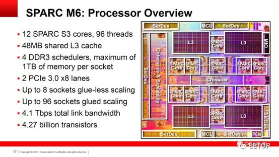 - 2013 年的SPARC M6:28纳米制程,时钟3.6GHz,12核96线程。