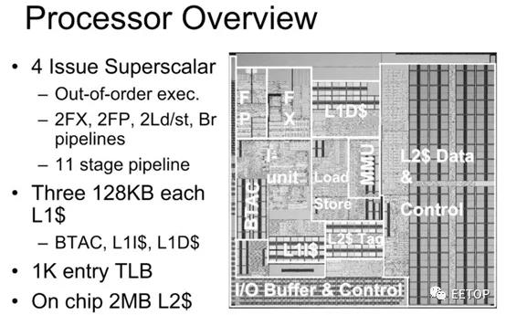 1997年的UltraSPARC II(0.35μm制程,时钟250MHz):英特尔推出300MHz的Pentium II,而UltraSPARC II的微架构基本沿用UltraSPARC I。