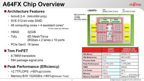 近期夺下Top500首位的日本理化学研究所超级电脑「富岳」,心脏Fujitsu A64FX,实际上就是将指令集架构,从SPARC v9和HPC-ACE2,替换成ARM v8.2A加SVE的进化版。
