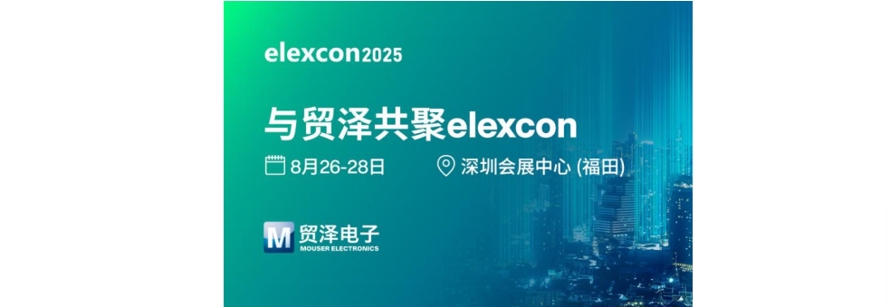 2025年8月15日 – 提供超丰富半导体和电子元器件™的业界知名新品引入 (NPI) 代理商贸泽电子(Mouser Electronics)宣布将于8月27-29日