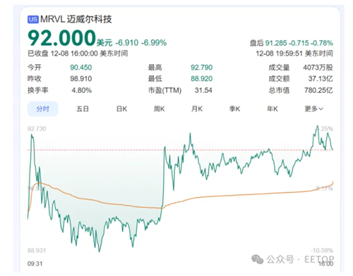 网络通讯芯片设计巨头美满科技(Marvell)因遭遇亚马逊订单转移传闻,叠加微软或转投竞争对手博通的利空冲击,股价应声大跌。据MarketWatch