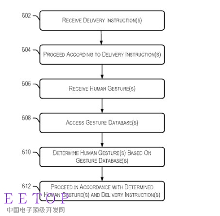 根据专利描述,这是“一个配备包括推进装置、传感器设备和管理系统的无人驾驶飞行器。该管理系统被配置为通过传感器设备接收人类手势,并作为回应,指示推进装置影响和调整飞行器的行为。人类的手势包括:可见的手势、可听的手势和其他能够被无人机识别的手势”。