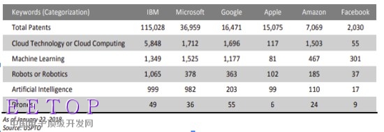 在专利技术方面,亚马逊与全球领先的科技巨头展开了激烈的竞争。