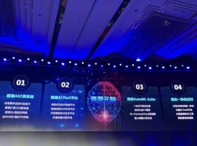 超强人工智能计算系统:通过浪潮人工智能计算平台、人工智能超高速计算加速卡、极低延迟RDMA网络与超高带宽并行存储,共同提供极致人工智能计算性能。敏捷人工智能Paas平台:由极致优化的人工智能资源平台、极速流程化人工智能开发平台、开放兼容的人工智能生态平台和秒速构建人工智能软件栈。最新开发的人工智能PaaS平台AIStation面向人工智能企业训练场景,可实现容器化部署、可视化开发、集中化管理等,有效打通开发环境、计算资源与数据资源,提升开发效率。高效的Auto ML Suite:最新开发的AutoML Suite可实现非专业人员亦能通过极少操作构建网络模型并获得高精度,极大降低了人工智能开发、应用的门槛和成本。在2018年的NeurIPS 的自动机器学习挑战赛中,浪潮与北京邮电大学、中南大学团队合作,获得自动机器学习领域的国际顶尖赛事的全球第三佳绩。整合一体化交付:计算/存储/网络一体化、内置人工智能 Paas平台、内置建模优化工具、预配置系统调优。虽然元脑包含技术栈颇多,但是最重要且最基础的还是超强的人工智能计算系统,本次浪潮进一步丰富了人工智能计算产品。浪潮拥有业界最全的人工智能产品线,覆盖从单机4卡到64卡集群的不同人工智能计算平台,产品涵盖GPU/CPU/FPGA等所有计算技术,覆盖了从小规模的样本训练到千亿样本、万亿参数级别的超大规模模型训练需求,能够满足人工智能云、深度学习模型训练和线上推理等各类人工智能应用场景,对计算架构性能、功耗的不同需求。从2018年以来浪潮持续发布多款人工智能创新产品,包括计算性能高达每秒2千万亿次的人工智能超级服务器AGX-5,专为智能视频分析优化设计的人工智能服务器NF5280M5-V,全球首款集成HBM2的人工智能计算可重构加速卡F37X,支持TensorFlow的FPGA计算加速引擎TF2,人工智能开箱即用即开发的百度ABC一体机3.0。