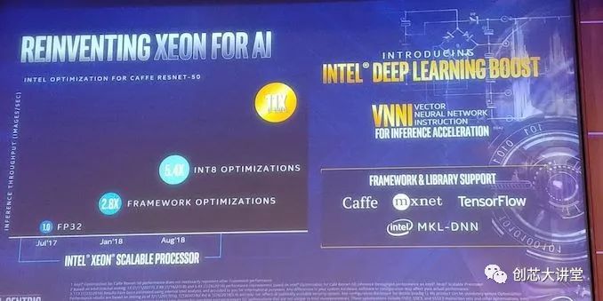 因此,英特尔或许有机会将英伟达挡在门外,直到他们在CNN工作负载中为英伟达的GPU找到一个合理的替代方案。英特尔一直在为Xeons可伸缩系列产品疯狂地添加功能,并优化其软件堆栈,以对抗英伟达的人工智能霸主地位。优化的人工智能软件,如英特尔自己的Python发行版,英特尔数学内核库用于深度学习,甚至英特尔数据分析加速库——主要用于传统的机器学习……