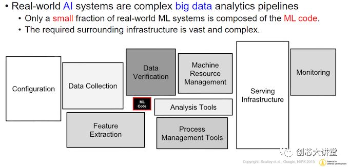 简而言之,实际的机器学习代码执行只是构建和AI应用程序所需的软件工具的一小部分。为什么?让我们深入研究一下。