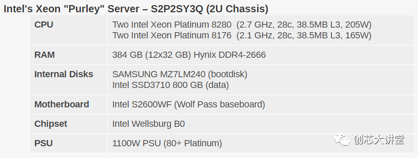 当然,在英特尔方面,我们正在关注该公司新的Cascade Lake Xeon可扩展CPU。该公司提供了28个核心型号中的两个,其中包括165瓦Xeon Platinum8176,以及更快的205瓦Xeon Platinum8280。