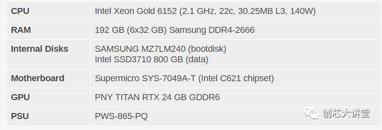用于与Cascade Lake的比较评测,我们使用了英伟达最新的“图灵(Turing)”泰坦(Titan)RTX卡。虽然这些并不是真正的数据中心卡,但它们是基于Turing的,这意味着它们提供了英伟达最新的功能。在我工作的大学里,我们的深度学习研究人员使用这些GPU来训练人工智能模型,因为泰坦卡价格低廉,而且有大量GPU内存可用。