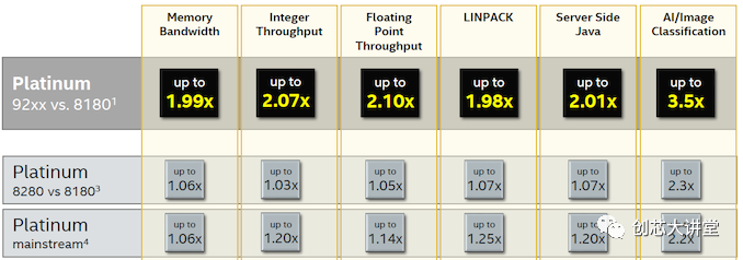 总结一下,让我们来看看第二代Xeon Scalable的性能,以及它在功能方面带来的好处。使用Cascade Lake,英特尔将性能提高了3%到6%,提高了安全性,修复了一些非常重要的漏洞/攻击,添加了一些SIMD指令,并改进了整个服务器平台。这不是什么惊天动地,但是你得到更多相同的价格和功率范围,那么什么不喜欢?
