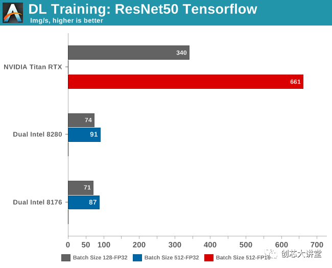 同时,作为一些内部管家,对于普通读者,我会注意到下面的基准与Nate为我们的Titan V评论所进行的测试不能直接比较。它是相同的基准,但Nate运行了英伟达的Caffe2 Docker映像中包含的标准ResNet-50培训实现。但是,由于我的团队主要使用TensorFlow作为深度学习框架,我们倾向于坚持使用它。所有基准测试