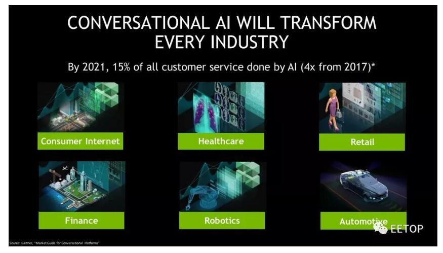 根据调研以及业者的预测,对话式AI 将在人类各个不同产业,如零售、金融、医疗、汽车、机器人和消费性网路市场带来重大影响。