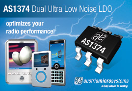 任何负载情况下,AS1374仅需要1μF输出电容即可稳定工作。该器件采用6焊球WLP封装。有关AS1374超低电压噪声、低压差稳压器的更多信息,请访问 http://www.austriamicrosystems.com/LDO/AS1374