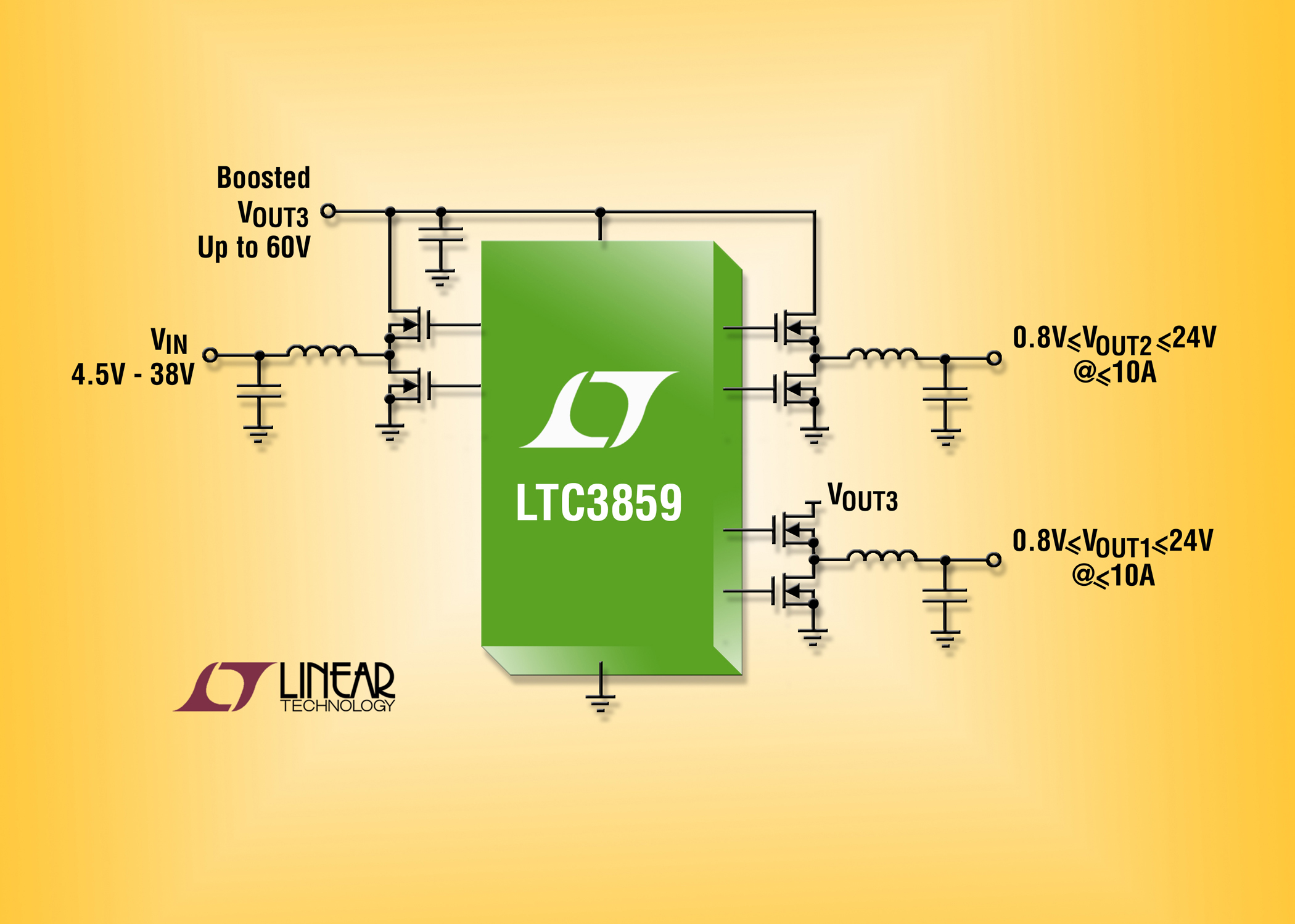 2010-04-06 15:49:39 本站原创 加利福尼亚州米尔皮塔斯 (MILPITAS, CA) – 2010 年 3 月 31日 – 凌力尔特公司 (Linear Technology Corporation) 推出三输出 (降压、降压、升压)、低静态电流同步 DC/DC 控制器 LTC3859,该器件在汽车冷车发动情况下保持所有输出电压处于稳定状态。在发动机重新启动或冷车发动时,12V 汽车电池的电压可以下降至不到 4V,从而引起信息娱乐系统和其它用 5V 或更高电压工作的电子产品复位。高效率同步升压型转换器给两个降压型转换器供电,从而在汽车电池电压下降时避免输出压差,这在汽车启动/停止系统中是一个有用的功能,该系统在空闲时关闭发动机以节省燃料。或者,降压型控制器可以由输入供电,以实现一个通用的三 输出控制器。