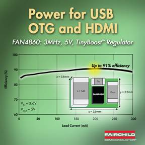 Fairchild推出5V 300mA TinyBoost稳压器产品FAN4860