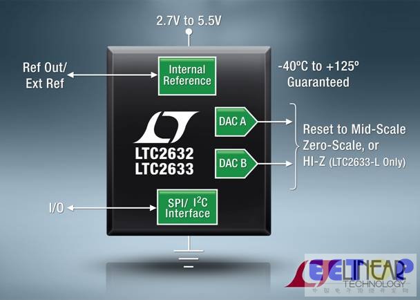 照片说明:具集成式基准的双通道 SPI / I2C DAC