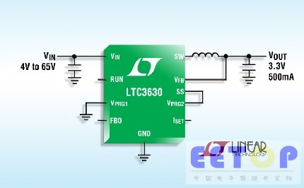 2012-05-31 11:00:16 本站原创加利福尼亚州米尔皮塔斯 (MILPITAS, CA) – 2012 年 5 月 31 日 – 凌力尔特公司 (Linear Technology Corporation) 推出 65V 输入的同步降压型转换器 LTC3630,该器件采用 16 引线耐热性能增强型 3mm x 5mm DFN 或 MSOP 封装,提供高达 500mA 的连续输出电流。其内部的同步整流拓扑提供了高达 90% 的效率,而在突发模式 (Burst Mode®) 工作时仅需要 12µA 静态电流 (无负载情况下),从而最大限度地延长了电池运行时间。LTC3630 在 4V 至 65V 的输入电压范围内工作,非常适用于多种应用,包括汽车、工业、医疗和航空电子。