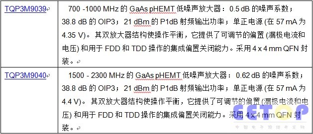 TriQuint公司最新双匹配放大器提供低噪声、高线性度和平衡输出