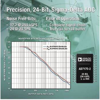 AD7175-2 Σ-Δ型ADC在20SPS时具有24个无噪声位,250kSPS时具有17.2个无噪声位,为设计人员提供了更宽的动态范围,可实现实验室分析仪器系统所需的较小信号测量偏差。与竞争型解决方案相比,AD7175-2在相同功耗下的吞吐速率高一倍,可实现更快、响应更迅速的测量系统,提供每通道50kSPS的扫描速率和20微秒的建立时间。这一组合使其非常适合可编程逻辑控制器和分布式控制系统输入模块应用。