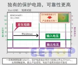 按一般产品的保护功能,当输出引脚发生短路(接触)时,因无法抑制产生的热量而使IC过热,最终使IC损坏。