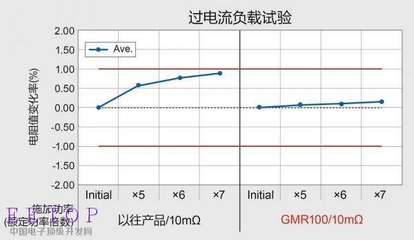 优异的散热性不仅可确保正常使用时的稳定性能,在过电流负载时阻值也不会变化,性能更稳定。