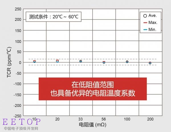 3.低阻值范围也具备优异的电阻温度系数