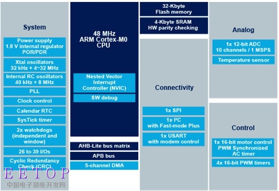 图示3-大联大友尚推出QC3.0+USB PD二合一Type-C车用充电器解决方案之MCU-STM32F030K6 features