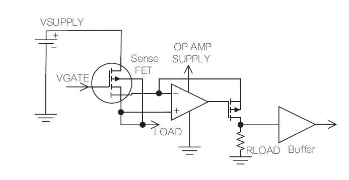 我不确定是否还有人使用电流检测MOSFET。几年前的一些实验室研究表明,一旦校准,MOSFET电流检测是非常精确和线性的,尽管它们具有约400ppm的温度系数,我对这样的结果很满意。但是,最佳的电路结构迫使检测电极在与MOSFET的源电压相同的电压下工作,同时输出部分电流。图5显示了如何使用电流驱动电路来实现MOSFET检测FET电路。