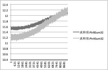 图五与图六显示遮蔽率为 0.4 时,ADPD188BI 的初始值。可以看到其蓝光和红外光平均 PTR 值约为 12.13。比值约为 1.005。