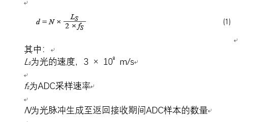 时间时,以ADC 采样数据为增量, 这里ADC采样速率决定了系统对接收的光脉冲采样时的分辨率。公式1显示如何根据ADC采样速率计算距离。