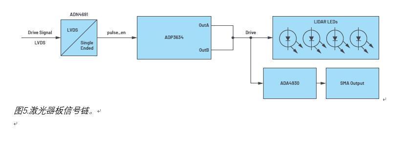 传输至激光器板,经过DAQ板以及连接DAQ和激光器板的扁平电缆期间,不易受到噪声影响。驱动信号可以返回至其中一个ADC通道,以获得飞行时间参考。采用外部