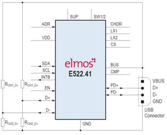 艾尔默斯公司日前宣布推出一款高可靠性、具备多功能保护、宽电压输入范围、高达2kV ESD保护的车载USB充电器解决方案-E522.41。该芯片符合USB2.0规范和AEC-Q100标准,是一款集成了降压型开关电源和USB数据保护功能的汽车级芯片。支持所有符合BC1.2(电池充电规范修订1.2)的下行负载充电,同时也支持目前大多数已知的USB充电器规范。除此之外,芯片还为用户预留了更多个性化的配置端口网络,给客户带来更多个性化的选择〖虑到实际应用过程中的线路损耗,在芯片外部设计了一个电流取样电阻,该电阻可以对充电电流进行实时采样,从而实现对线路损耗的补偿功能。