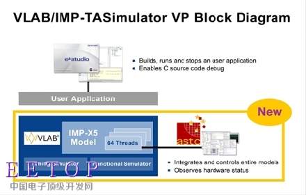 新型VP具有一个时序模拟器,通过对高速缓存、总线、处理器和其它主要组件的复杂时序行为进行建模,可准确掌握并反映硬件密钥时序并有效模拟IMP-X5。这使得系统开发人员在估计硬件处理时间时会比当前使用的周期基准模拟器至少快100倍。