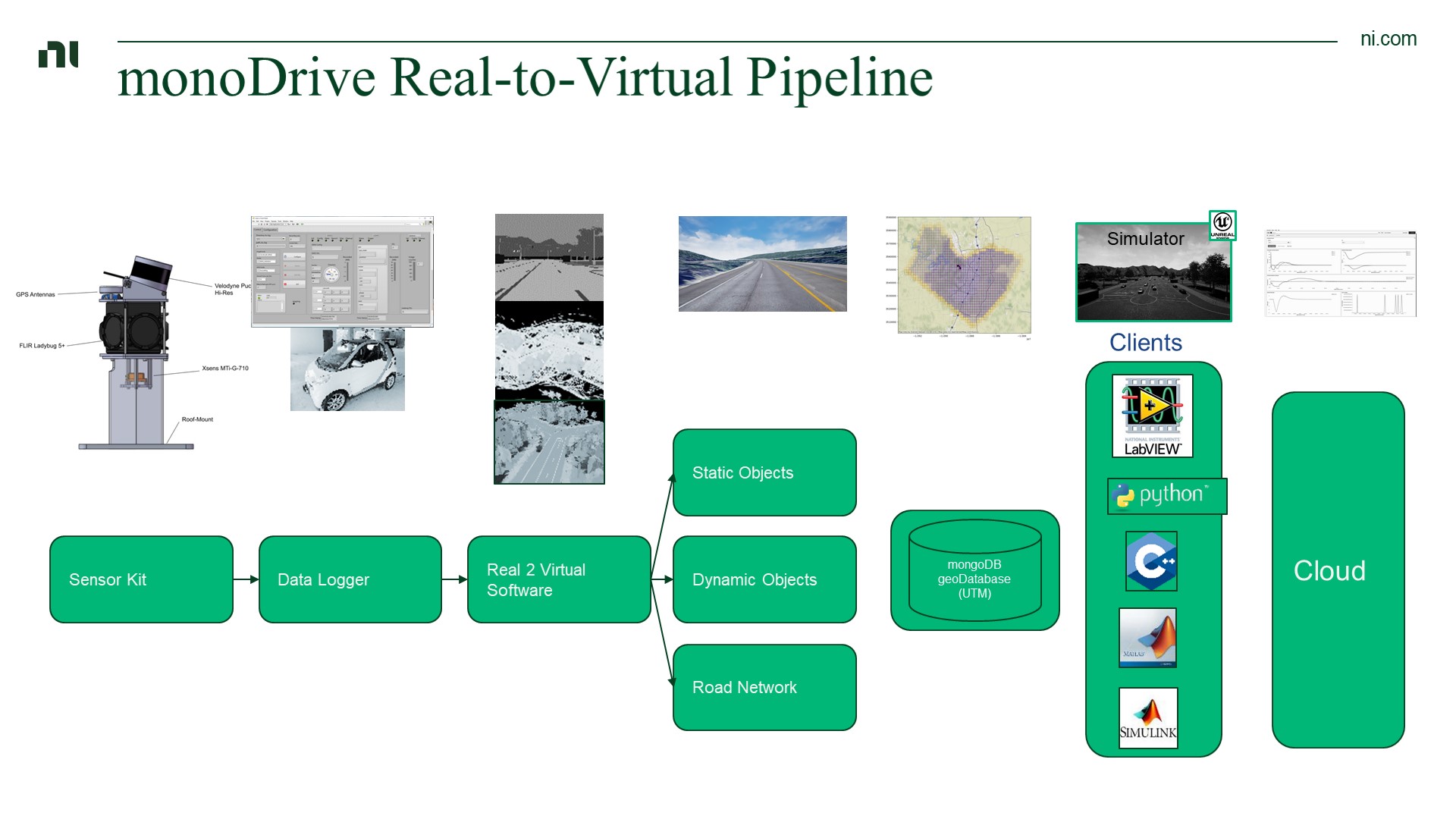 数字孪生技术是建立虚拟场景库的利器,数字孪生指的是把真实的场景一比一的放在虚拟环境中,生成一个孪生系统。NI 近期收购了自动驾驶
