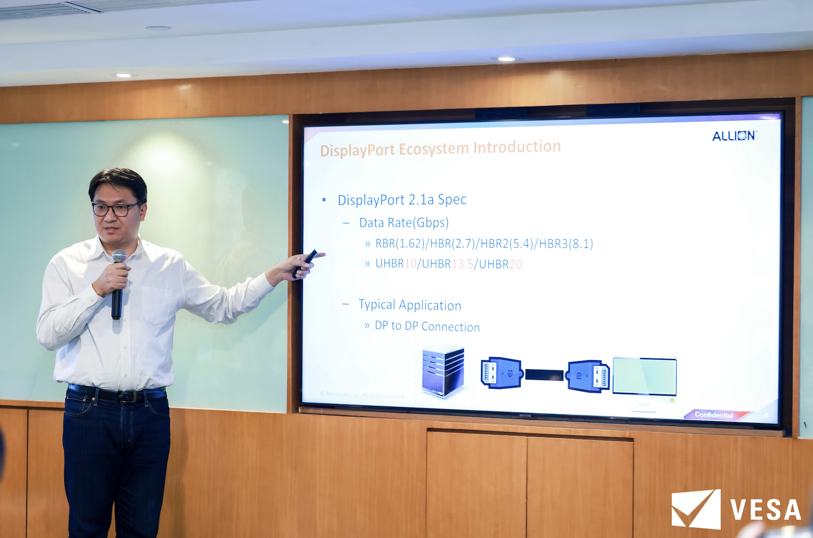 VESA在2025年5月于圣何塞会议中心举行的显示周博览会上,展示了联发科及其他成员使用全新CTS C模型验证DP AE标准的FPGA平台演示。