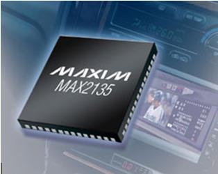 汽车系统的通用调谐器MAX2135。器件集成2路高性能信号通道,工作于单个分数N合成器。MAX2135采用小尺寸7mm x 7mm、TQFN封装,能够提供比使用2个分立的调谐器IC更为紧凑的方案。此外,器件具有极低的3.8dB (典型值) UHF噪声系数,两个信号通道都工作时功耗仅为330mW,仅一个通道工作时功耗仅为200mW。MAX2135集小尺寸封装、低功耗和低噪声特性于一体,可理想用于车载导航和娱乐系统。