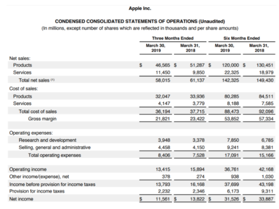 苹果第二财季营收为580亿美元,较上年同期的611亿美元下降5%;苹果第二财季净利润为116亿美元,比去年同期的138亿美元同比下滑16%;苹果第二财季每股摊薄收益2.46美元,同比下滑10%;苹果第二财季iPhone营收为310.5亿美元;苹果第二财季服务业务收入为114.5亿美元;苹果第二财季国际销售占该季总收入的61%;苹果公司对2019财年第三财季业绩作出了如下预期: