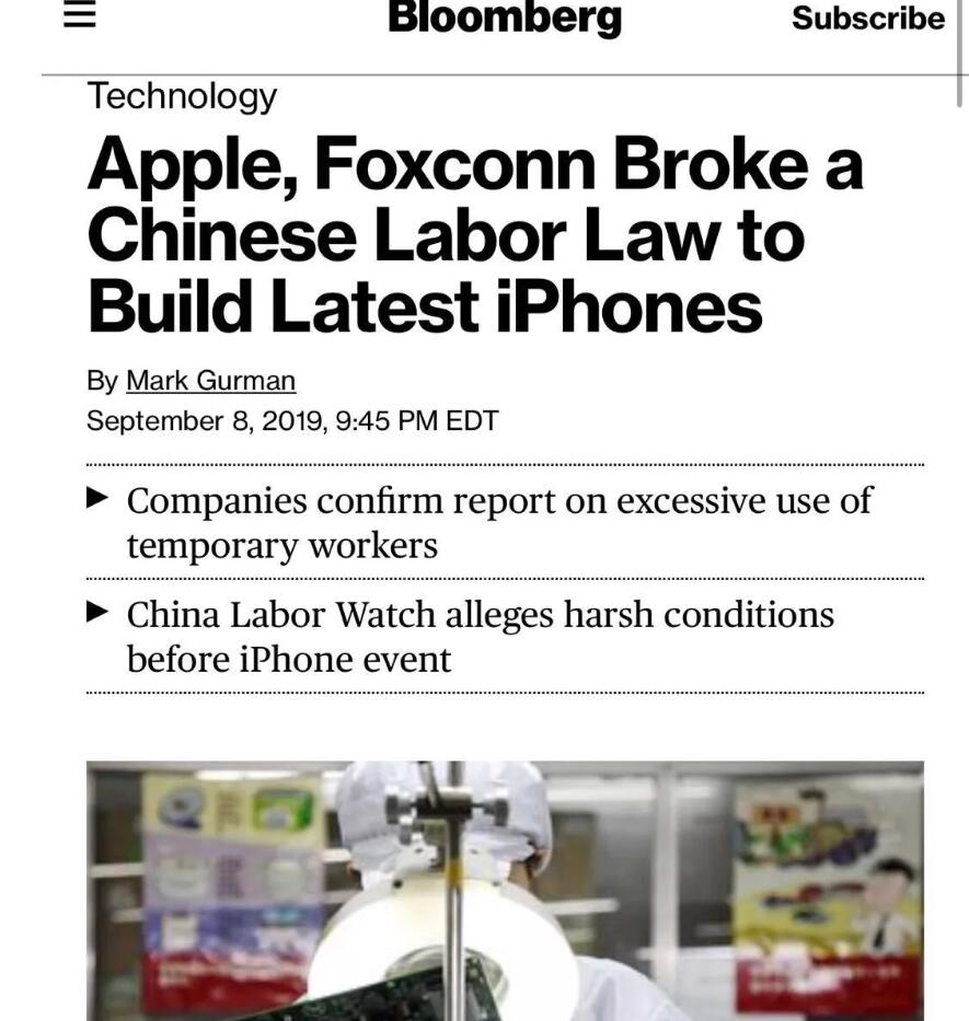 中国劳工观察选在在苹果本周二(9月10日)发布新款iPhone的前夕发布了上述报告。该非营利倡导组织暗中调查了中国工厂的情况,并表示发现苹果的合作伙伴过去存在其他侵犯劳工权利的行为。
