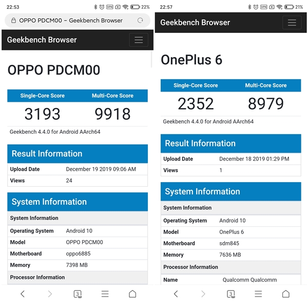 2019-12-20 09:29:35 快科技GeekBench网站显示,Reno3搭载联发科天玑1000L芯片(MT6885),单核成绩为3193,多核成绩达到了9918。