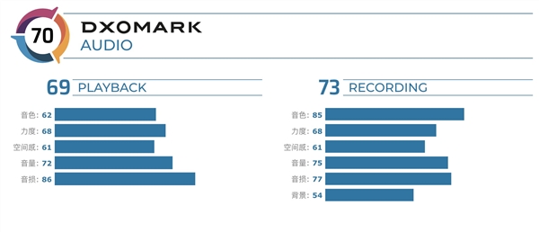 具体到子项评分,iPhone SE播放取得了69分,录制取得了73分,其中录制的音色一项取得了85分历史最高分,DxO表示:“iPhone SE的音色性能一直都是杰出的,在吵杂环境(例如音乐会)里的表现格外好,音调平衡保持的不错,失真也很少。”