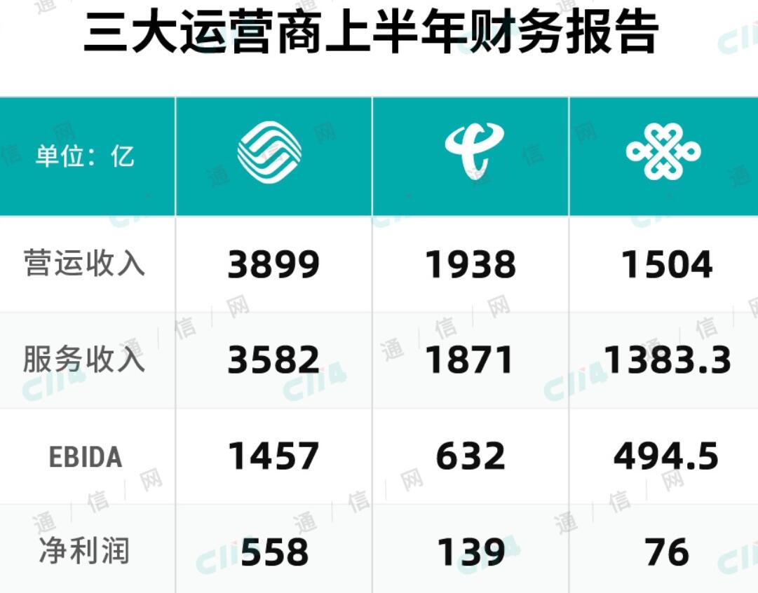 根据工信部发布的《2020年上半年通信业经济运行情况》显示,上半年,我国电信业务收入累计完成6927亿元,同比增长3.2%。作为通信行业的风向标的三大运营商在近日也陆续发布了上半年财务报告。对比去年同期,三大运营商的营收利润等主要业绩数据相差无几。