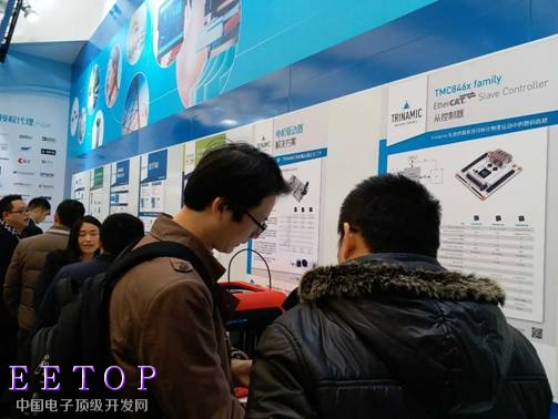 供应商TRINAMIC一直与世健关系紧密。本次展会,世健展出了与TRINAMIC的TMC846x family Ether CAT Slave Controller从控制器以及电机驱动器解决方案。EtherCAT是一种高性能、低成本、且易于使用的