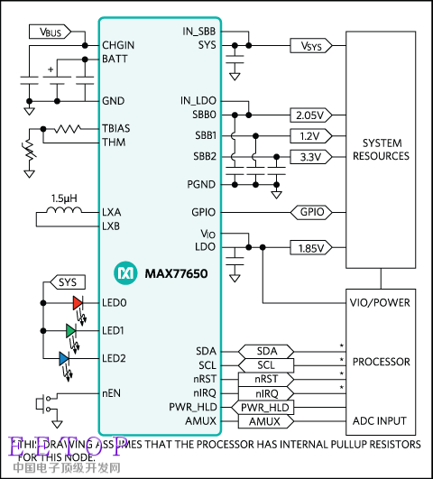 MAX77650和MAX77651具有单电感多输出调节器和充电器,理想用于小尺寸锂离子电池的优化Maxim推出MAX77650/MAX77651电源管理IC (PMIC),帮助Bluetooth耳机、活动监测、智能服装、智能手表及其它尺寸严格受限设备开发商提高电池寿命和效率。框图: