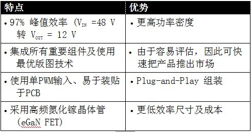 第一块DrGaNPLUS EPC9202开发板为100 V、10 A 半桥功率转换器,工程师可以立即及易于使用,只需“plug and play”开发板便能评估高性能氮化镓晶体管,例如常见于通信应用的电源转换是当Vin 是48 V 及 Vout 是 12 V时,该板可实现97% 的峰值效率。