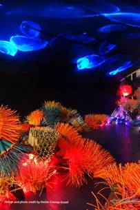 为了让海洋生活可以更直观形象的方式展现出来,Atelier Cosmas Gozali联系了欧司朗灯具与系统解决方案和Dots Studio的专家们,共同设计照明装置。借着Traxon动态灵活的产品谱系,欧司朗灯具与系统解决方案此次通过提供Traxon Dot XL connected with e:cueButler等产品,设计了灵活可定制的照明解决方案,展示了一个精良且绚丽的海洋装置,为游客创造了一个和谐、温馨的体验。
