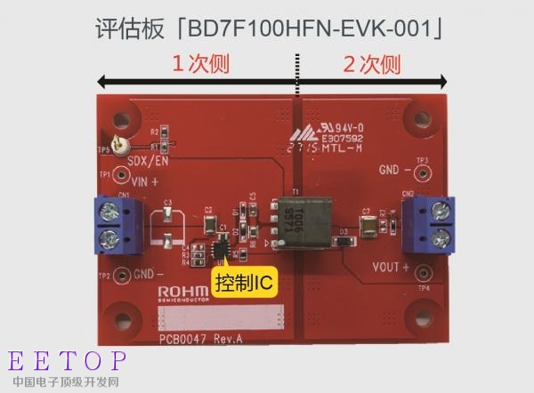 不仅本系列产品,另外还可提供搭载了代表产品“BD7F100HFN-LB”的评估板“BD7F100HFN-EVK-001”。可以简单评估搭载BD7F100HFN-LB、输入电压24V 、输出电压5V、输出电流800mA的隔离型电源。