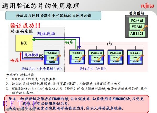 需要同时装备于电子器械的主体和外设,验证过程为:首先MCU向验证